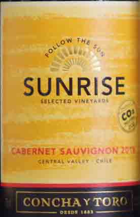黄色いラベルが目印のサンライズです。値段は1,000円前後でコスパ高い。日照量が300日以上ある畑のブドウを使っているので、とても濃い味わいです。典型的なチリカベです。値段の割には美味しいかなって感じ。おすすめ度3